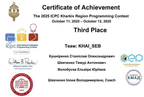 Друзі, вітаємо! В рамках "Кубка університетів з програмування 2025" кафедра інженерії програмного забезпечення (https://se.khai.edu/) Національного аерокосмічного університету ім. М. Є.…